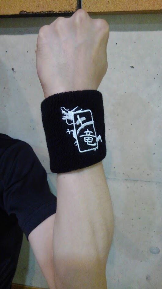 土竜の英名「アースドラゴン」から取り、かっこいいドラゴンの刺繍が入った土竜オリジナルリストバンド。